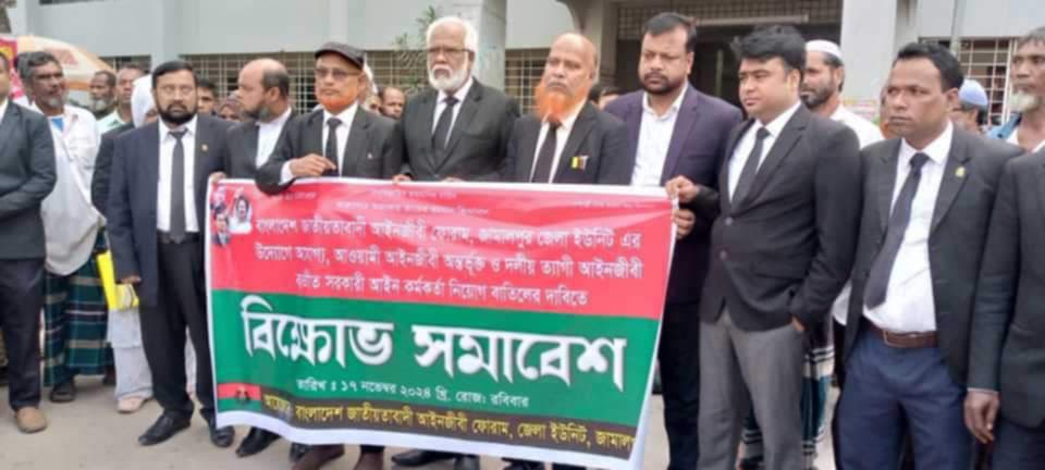 তিনি বলেন, আমরা জেলা ম্যাজিস্ট্রেট, চিফ জুডিশিয়াল ম্যাজিস্ট্রেটকে অনুরোধ করব এ তালিকা যাতে গ্রহণ করা না হয়।আমরা দ্রুত এ ত্রুটিপূর্ণ তালিকা বাতিলের দাবি জানাচ্ছি।এপিপি হিসেবে নিয়োগ পাওয়া আব্দুল্লাহ আল আমিন, মো. রাসেল রানা, আঁখি আক্তার, তামিমা বিলকিস, হাবিবা সুলতানা, সাবিনা ইয়াসমিনকে আওয়ামীপন্থি আইনজীবী হিসেবে দাবি করে তাদের নিয়োগ বাতিল চেয়েছে জাতীয়তাবাদী আইনজীবী ফোরাম।জামালপুর জাতীয়তাবাদী আইনজীবী ফোরামের সাধারণ সম্পাদক অ্যাডভোকেট দিদারুল ইসলামের সভাপতিত্বে প্রতিবাদ সভায় বক্তব্য রাখেন জামালপুর জেলা বিএনপির সহআইন সম্পাদক অ্যাডভোকেট নজরুল ইসলাম মোহন ও মোবারক হোসেন। শতাধিক আইনজীবী মানববন্ধন ও প্রতিবাদ সমাবেশে অংশ নেয়।
