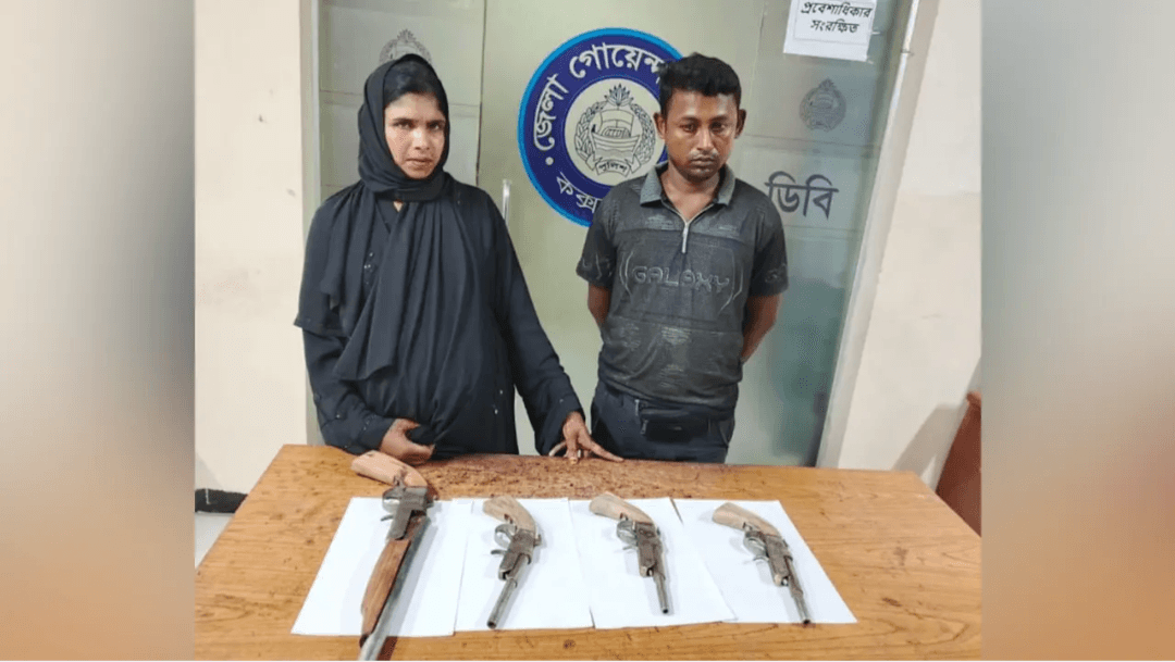 তিনি আরও জানান, মহেশখালী থেকে আসার পথে কক্সবাজার শহরের ৬নং ঘাটের পল্টুন থেকে এই দম্পতিকে আটক করা হয়। পরে তাদের সঙ্গে থাকা কালো একটি স্কুল ব্যাগ তল্লাশি করে চারটি দেশীয় বিভিন্ন আকারের এলজি বন্দুক উদ্ধার করা হয়।