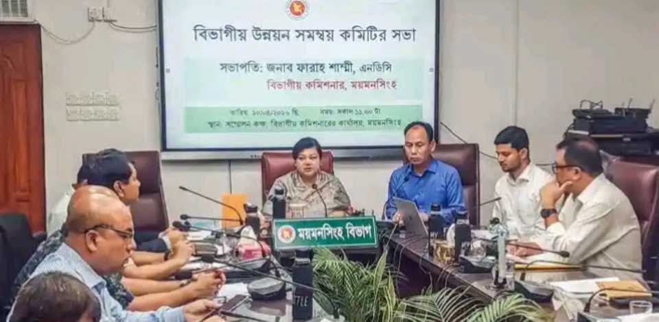 ময়মনসিংহ বিভাগের বিভিন্ন সরকারি দপ্তরের কার্যক্রমের অগ্রগতি নিয়ে বিভাগীয় উন্নয়ন সমন্বয় কমিটির সভা আজ সোমবার বিভাগীয় কমিশনার কার্যালয়ের সম্মেলনকক্ষে অনুষ্ঠিত হয়। এতে সভাপতিত্ব করেন বিভাগীয় কমিশনার ফারাহ শাম্মী, এনডিসি।