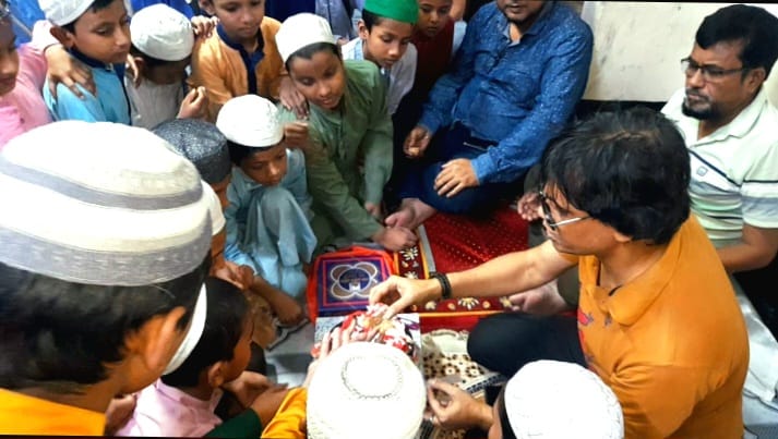 এতিম ও দুস্থদের মাঝে আনন্দ ভাগাভাগি, খাদ্য বিতরণে মেতে উঠলেন এই গুণী নির্মাতা জন্মদিনে তিনি বাদ এ’শা ঢাকা ক্যান্টনমেন্ট কচুক্ষেত এলাকার এক মাদ্রাসায় এতিম শিশু বাচ্চা এবং গণ্যমান্যদের নিয়ে দোয়া মাহফিল ও কেক কাটার অনুষ্ঠানের আয়োজন করেন তামিম রহমান নামের তার এক ভক্ত শুভাকাঙ্ক্ষী সহ বিশিষ্ট অভিনেত্রী এবং লেখিকা প্রিন্সেস বিউটি । যেখানে অংশ নেয় অসংখ্য এতিম শিশুবাচ্চারা। সাধারণত সমাজের নানা আনন্দ অনুষ্ঠান থেকে বঞ্চিত এই শিশুরা সেদিনের ক্ষণিকের আনন্দে উচ্ছ্বসিত হয়ে ওঠেন তারা সবাই।সেই মুহূর্তে তাদের মুখে হাসিই ছিল পরিচালকের সবচেয়ে বড় পাওয়া। পিতা-মাতাহারা পরিচালক সাহেব সে মুহূর্তে হয়ে ওঠেন ঠিক সেই বাচ্চা শিশুদের মতো চঞ্চল। তাদের সকলের সাথে আনন্দটুকু ভাগাভাগি করতে পেরে জ্যাম্বস্ কাজল আবেগ আপ্লুত হয়ে পড়েন!