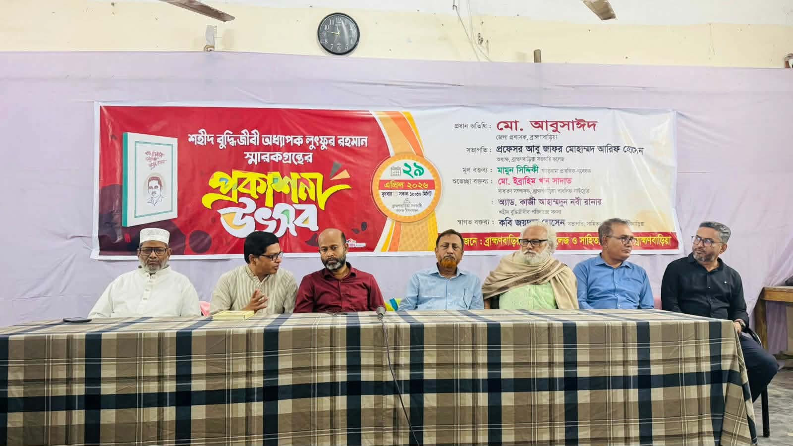 বুধবার (২৯ এপ্রিল) ব্রাহ্মণবাড়িয়া সরকারি কলেজ মিলনায়তনে সাহিত্য একাডেমি এবং ব্রাহ্মণবাড়িয়া সরকারি কলেজের যৌথ আয়োজনে কবি জয়দুল হোসেন ও মামুন সিদ্দিকী সম্পাদিত শহীদ বুদ্ধিজীবী অধ্যাপক লুৎফুর রহমান স্মারকগ্রন্থের প্রকাশনা উৎসবে প্রধান অতিথি উপস্থিত ছিলেন জেলা প্রশাসক মোঃ আবুসাঈদ।