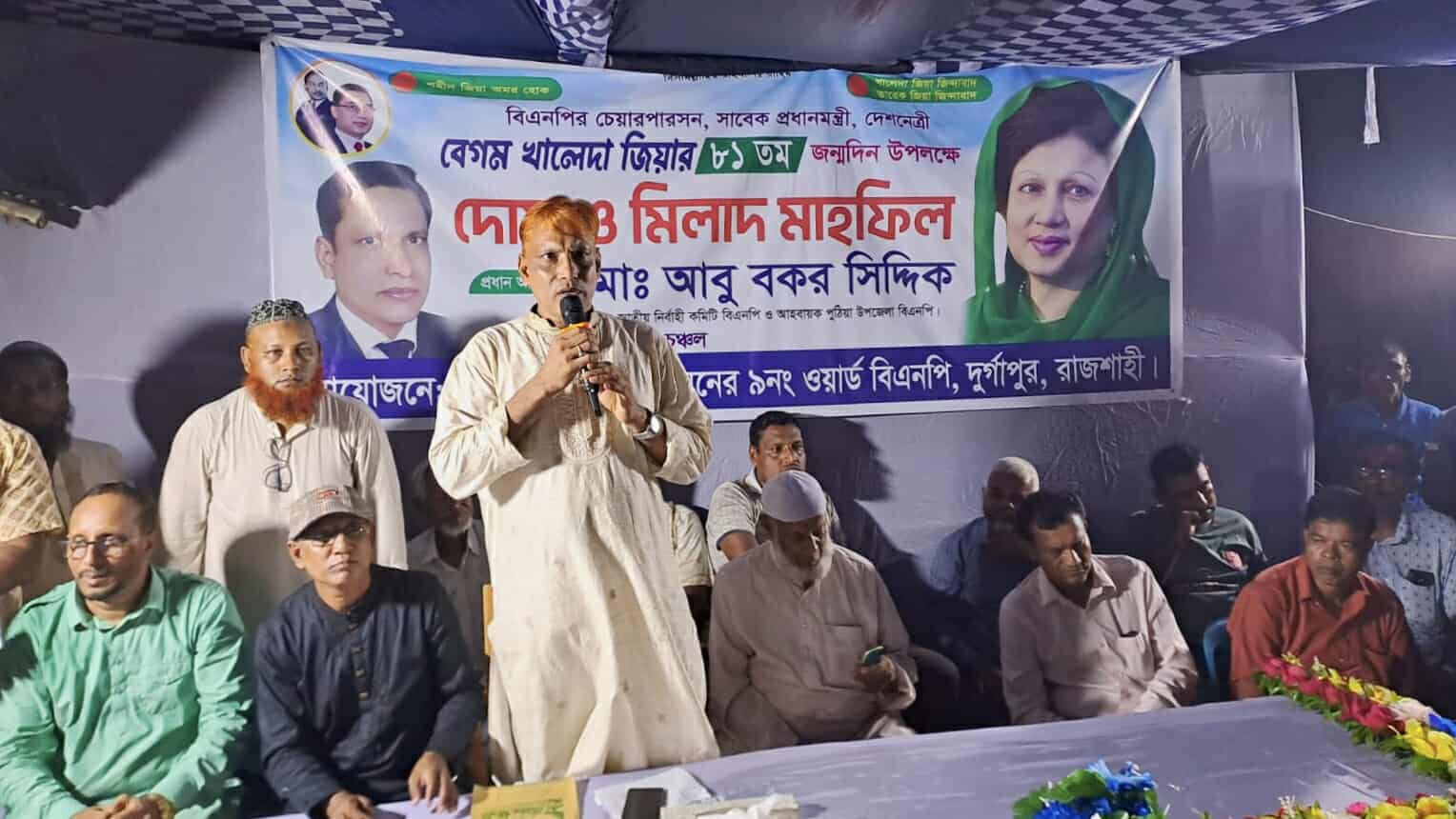 দুর্গাপুর প্রতিবেদক: বিএনপি চেয়ারপারসন ও তিনবারের সাবেক প্রধানমন্ত্রী বেগম খালেদা জিয়ার ৮০তম জন্মদিন উপলক্ষে তার সুস্থতা ও দীর্ঘায়ু কামনায় রাজশাহীর দুর্গাপুরে দোয়া ও মিলাদ মাহফিল অনুষ্ঠিত হয়েছে। মঙ্গলবার (১৯ আগস্ট)…
